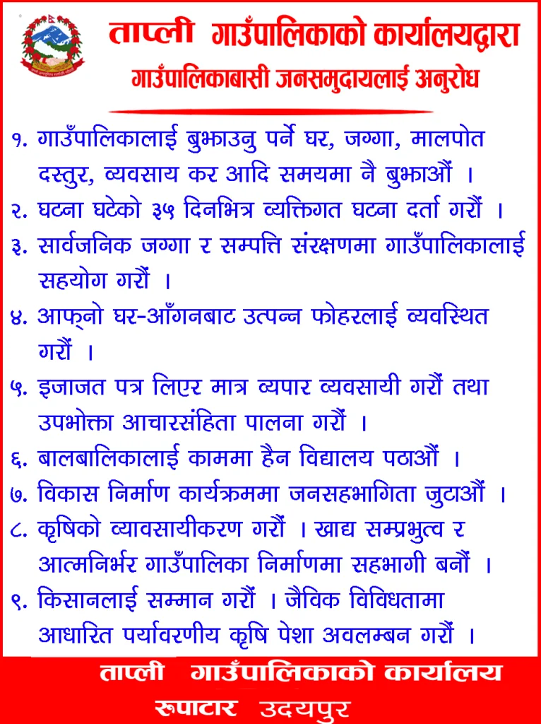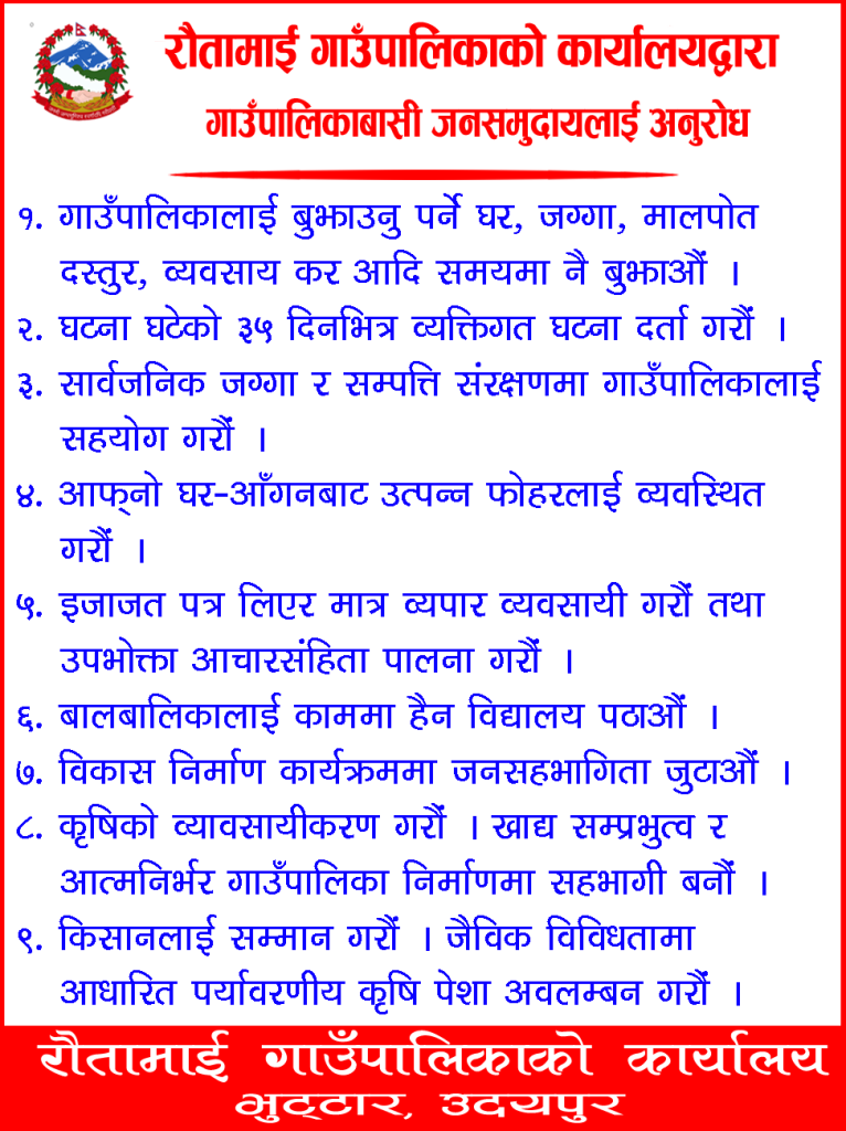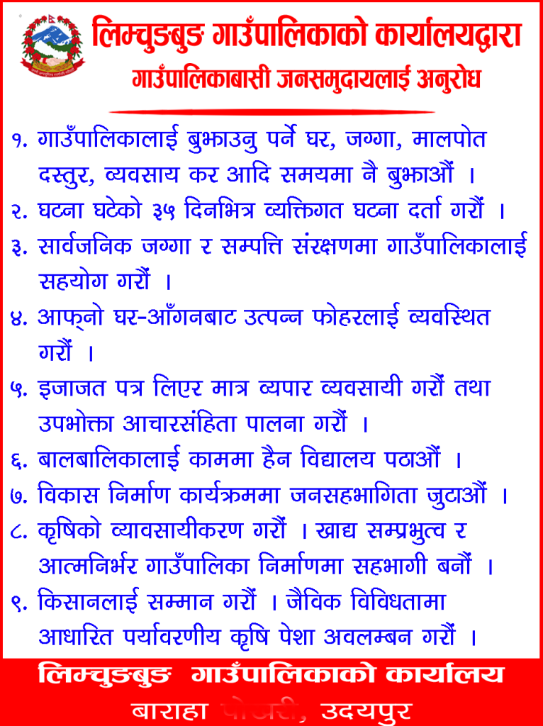 कोरोनाको दोश्रो भेरियन्ट यती बेला तिब्ररुपमा बढ्न थालेको छ भने देशका बिभिन्ना शहरहरुमा निषेधाज्ञा जारी भैसकेका छन यसबाट उदयपुर जिल्ला पनि अछुतो नरहने भन्दै कोभिड-१९ संक्रमण फैलिन नदिन जिल्ला कोभिड–१९ संकट व्यवस्थापन केन्द्र (डिसिसीएमसी) का सदस्यले सकृयता देखाउनु भएको हो।